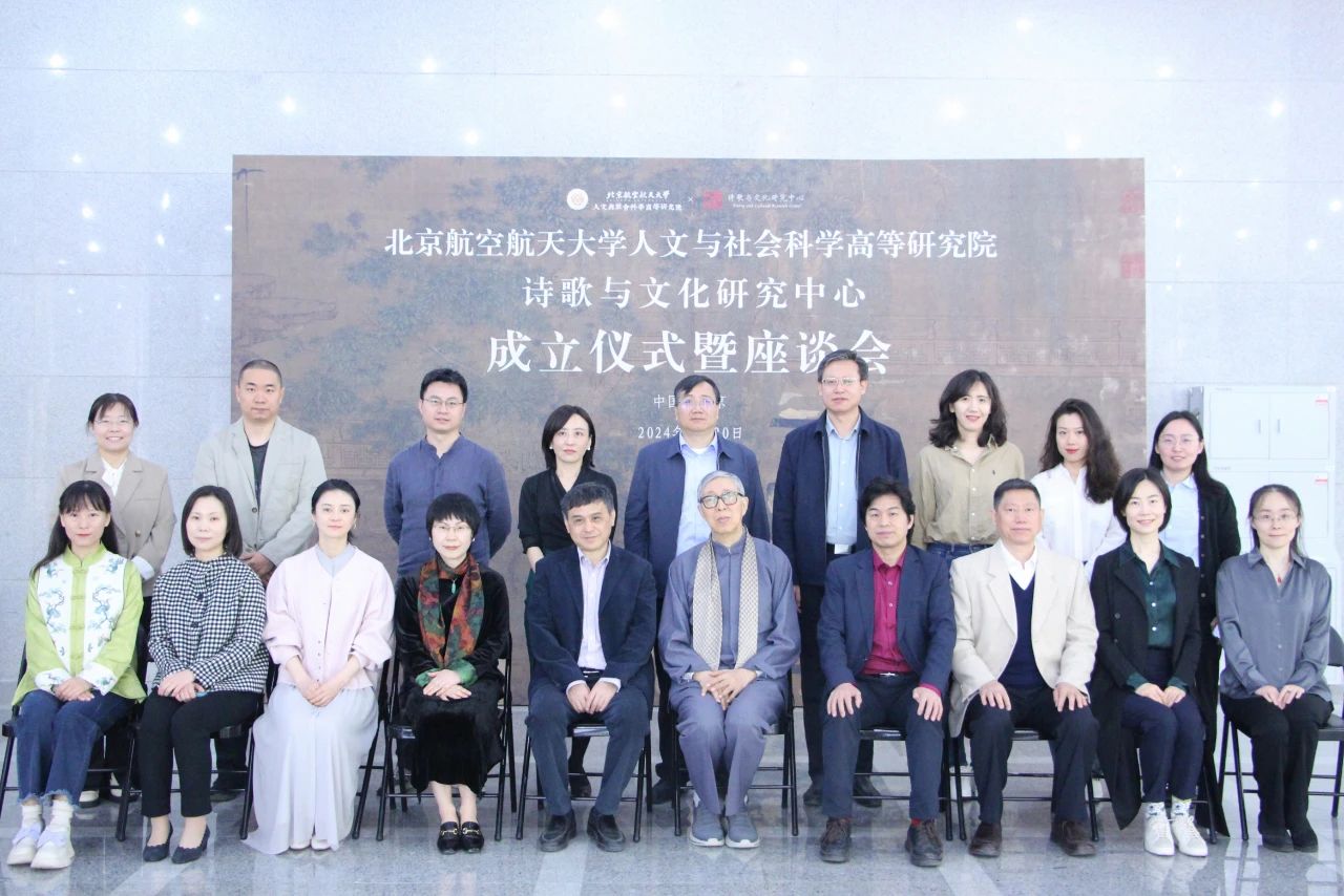 高研院院长龙卫球教授在致辞中感谢各位专家学者莅临北航。中心的成立适逢联合国中文日,龙卫球院长表示,作为一种语言艺术的诗歌同时具有文明的向度,并对中心的平台建立与队伍建设提出长远的设想和希望。随后,龙卫球院长与北京大学中文系、中国宋代文学学会理事、中国苏轼研究学会副会长教授张鸣,共同为北航高研院诗歌与文化研究中心揭牌并为各位专家学者颁发名誉主任与顾问聘书。于金龙书记立足诗歌与高质量人才培养的密切关系、积极拓展通识教育广度和深度的学院建院初心,介绍了诗歌与文化研究中心的创办初衷,并感谢兄弟高校专家学者的鼎力支持。