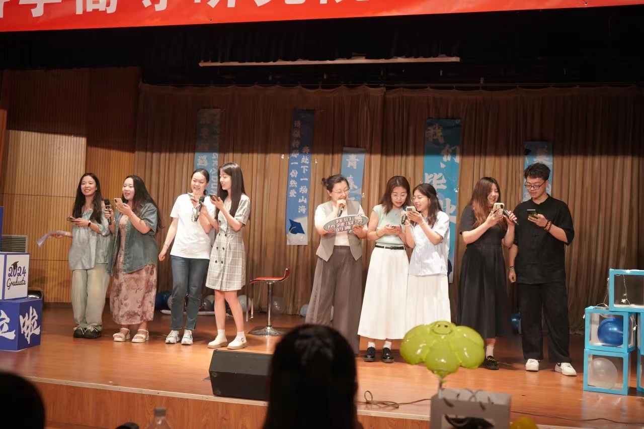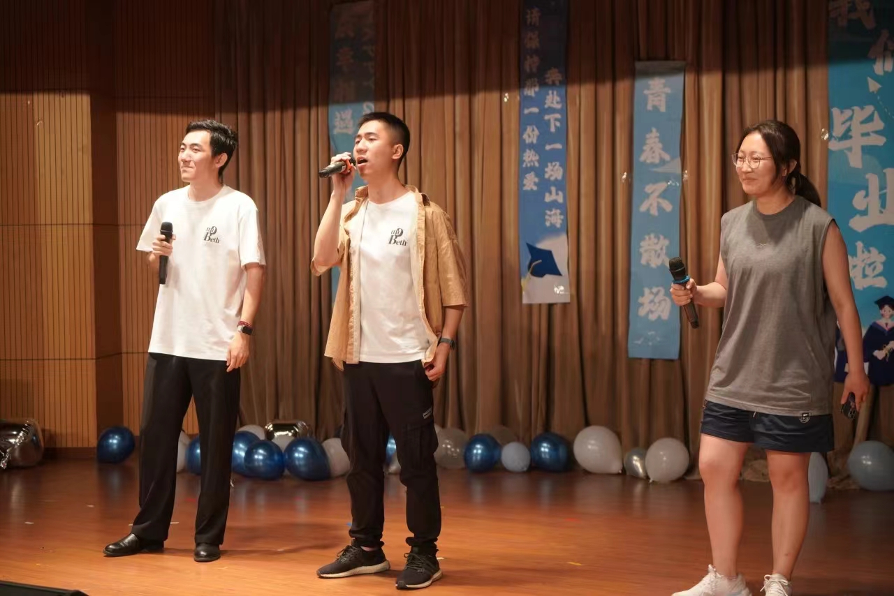 歌曲《彩虹》为毕业生们带来了希望和力量,鼓励他们坚持梦想、勇往直前,迎接未来的挑战。毕业总是充满离别的苦涩,《再见》以深情的歌词表达了对过去的深深眷恋和对未来的美好期许。本次晚会还筹备了一个特殊的节目,张晓明老师与导办全体成员为同学们表演了《阳光彩虹小白马》,将全场的气氛推向高潮。