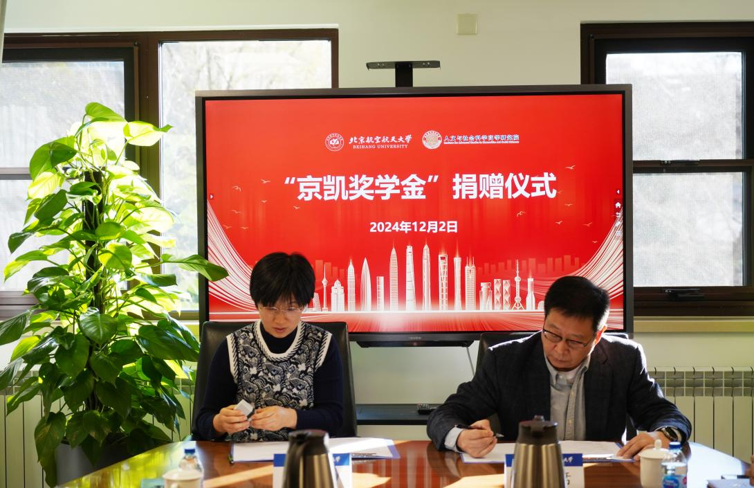 12月2日下午,北航高研院“京凯奖学金”捐赠仪式在北航校友之家举行。“京凯奖学金”由北京京凯律师事务所捐资设立,旨在激励高研院哲学等学科的优秀研究生,助力高研院学科建设和人才培养。北京京凯律师事务所主任律师赵志军,管委会执行主任张志强,合伙人律师莫洁云、张文平、闫永磊,北航计划财务部副部长封家平、校友联络发展处副处长武洋,高研院院长龙卫球、学院党委书记何情、学院哲学系副主任盛珂、学院分团委书记张晓明,最高人民法院少年司法研究基地副主任、北航法学院副教授王永茜参加捐赠仪式。仪式由高研院党委书记何情主持。