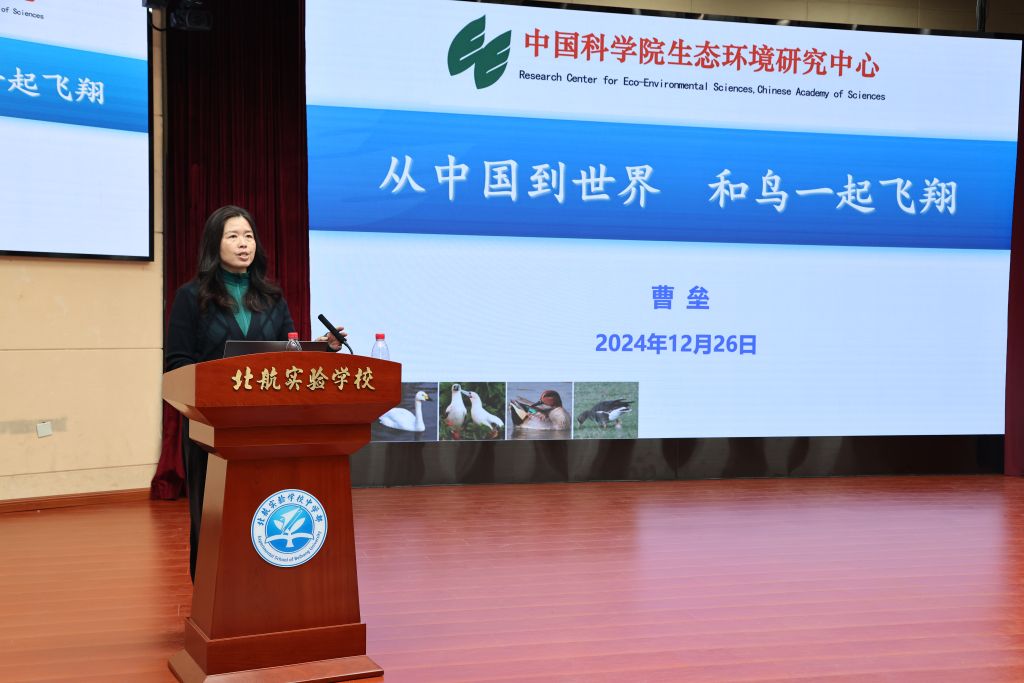 2024年12月26日下午,中国科学院生态环境研究中心邀请北京市海淀区生态环境局及北航人文与社会科学高等研究院共同走进北航实验学校(中学部)参加青少年生物多样性科普报告会,来自三家单位、北京日报社以及北航实验学校(中学部)的百余位科普教育一线工作者与中学生共同参与本次活动。