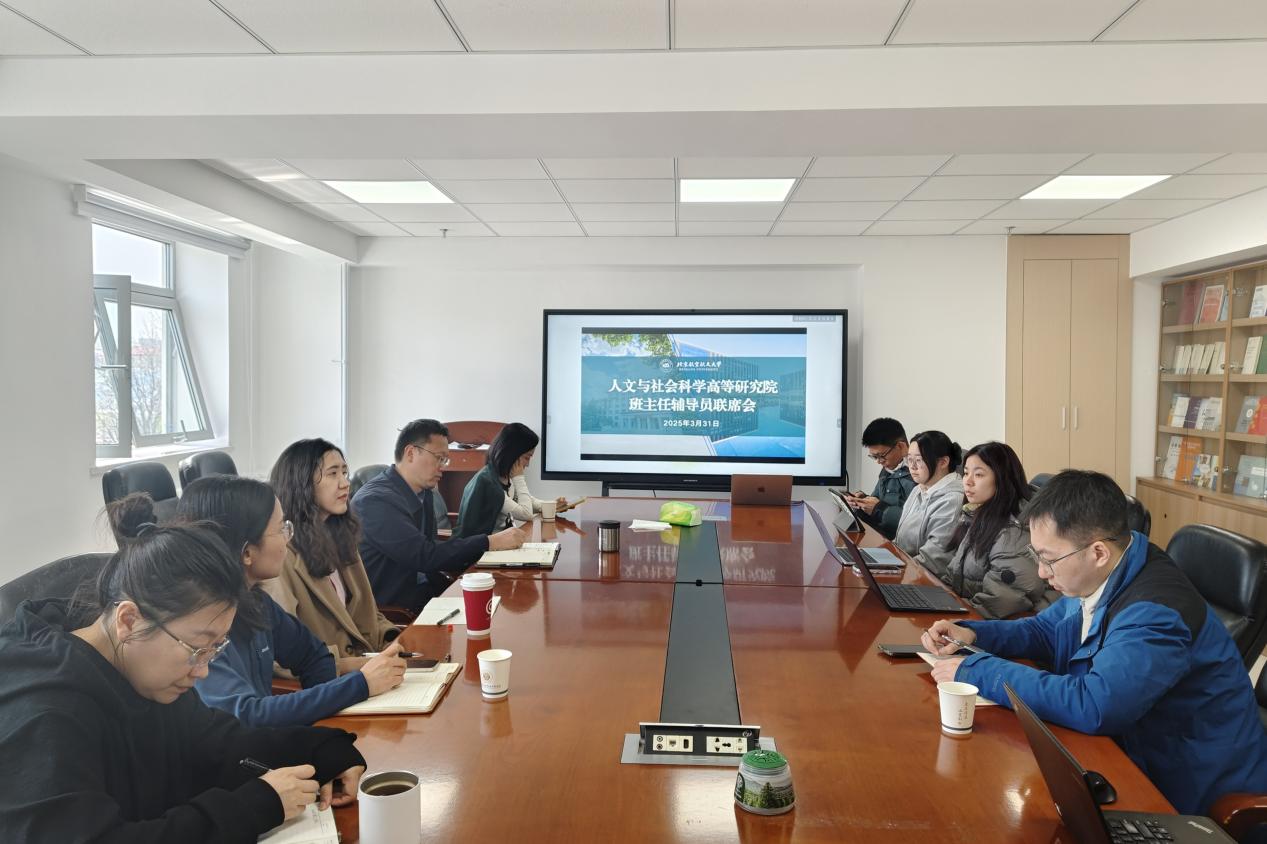 为加强班主任辅导员队伍沟通交流,进一步落实立德树人根本任务,推动新学期各项工作部署落实,人文与社会科学高等研究院于3月31日组织召开2024-2025学年春季学期班主任辅导员联席会。学院党委书记何情、副院长孙琳琳,全体本科班主任,专兼职辅导员参加会议。