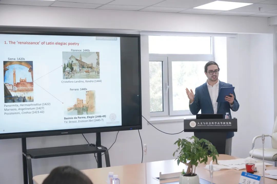 Jacopo PESARESI博士围绕15世纪人文主义诗人Basinio da Parma在费拉拉的诗作(32首拉丁诗歌)展开研究,探讨了Basinio的文学创作背景、作品主题以及其与当时文艺环境的密切联系。Pesaresi博士通过重新整合、翻译并注释这些诗作,更全面地呈现了Basinio青年时期的学术轨迹及其在意大利人文主义中的地位。