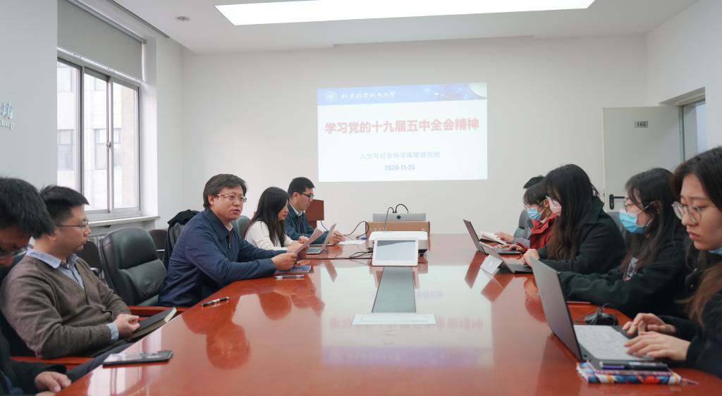 11月25日下午,人文与社会科学高等研究院在图书馆西配楼305会议室召开党的十九届五中全会精神专题学习会。高研院于金龙书记,顾家宁、陈绮、余成峰等三位班主任老师,学院专兼职辅导员、各年级党支部书记、学生会、分团委及各班学生骨干参加了专题学习。