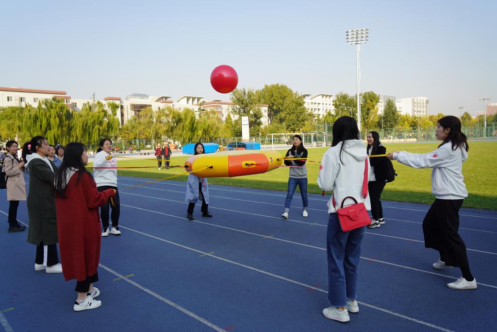 黄海军副校长为开幕式致辞,他指出学校围绕“在体育锻炼中享受乐趣、增强体质、健全人格、锤炼意志”的研究生体育活动目标,提出了“运动北航、筑梦翱翔”的体育活动赛事理念,并创新设立了杯赛制度,运动会开始,我院文化传播与管理专业甄奕和哲学专业张敏分别参与了女子100米短跑和女子跳远项目。两位运动员在赛场奋力拼搏,永不服输的精神感染了在场的同学。在“众星捧月”集体趣味运动会项目上,同学们在体育委员的指令下配合默契齐心协力,最终取得了优异的成绩。