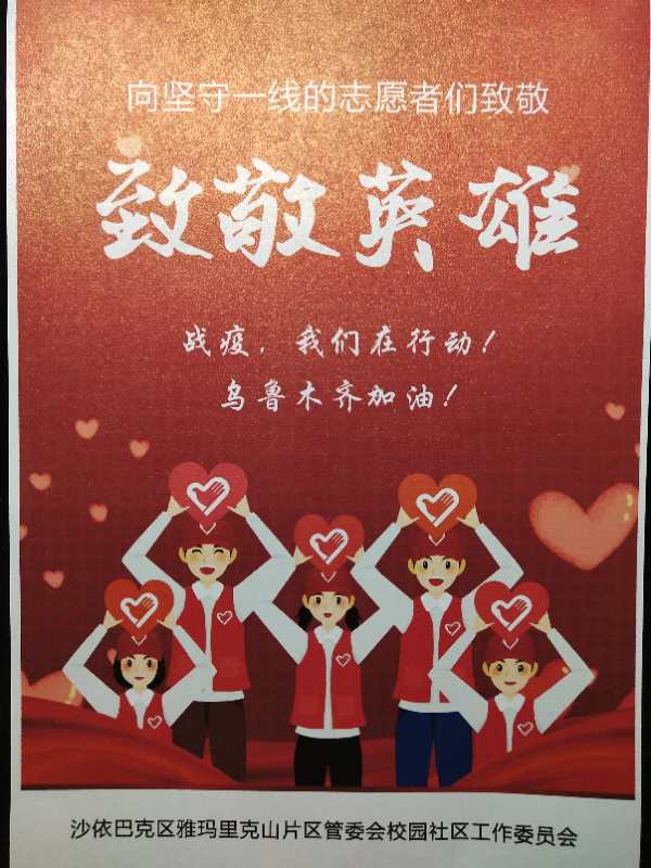疫情无情,人间有爱。奋战在一线的医务人员、社区干部、志愿者们无私奉献,为抗击疫情贡献了自己的力量。截至9月7日,确诊患者全部治愈出院,无症状感染者全部解除医学观察,新疆疫情全面清零,全面恢复生产生活秩序,取得了阶段性抗疫胜利!